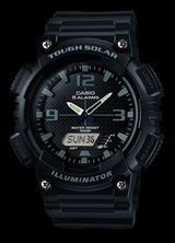 This classic CASIO timepiece is powered by Tough Solar and features 2 countdown timers, a stopwatch, 5 alarms and world time mode. The watch is housed in a durable resin case and is 100M water resistant.