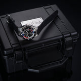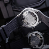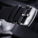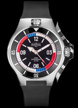 The watch must be held in an upright position for these breathing exercises – without the need for improvised support, if possible. The DAVOSA Apnea Diver Automatic offers the perfect solution, and is thus a watertight professional freediving instrument. By unscrewing the crown at 3 o’clock, the middle section of a slightly curved, 42 mm stainless steel case can be extracted. Thanks to a hinged ring that is attached to the middle section, the diver can now safely erect the remaining watch case while performing breathing exercises