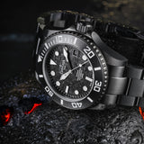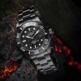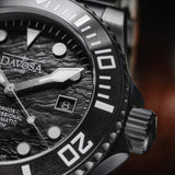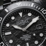 DLC (Diamond-Like Carbon) is a particularly hard carbon coating that gives the case of the Ternos Professional Black Rock exceptionally high scratch resistance and durability. The deep black surface not only creates a striking look, but also reliably protects the watch from daily wear and tear - whether on land or under water. The elegant matt finish of the DLC plating emphasises the uncompromising design of the Black Rock and makes it the ideal companion for anyone who wants to combine maximum performance with stylish restraint.