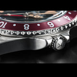The Swiss quality movement Ronda 505/24h also allows the display of a second time zone which is highlighted by a red hand.