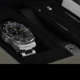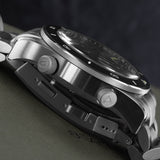 At the same time it’s a GMT automatic with ceramic 60 minute uni-directional divers bezel. Powered by a high grade Swiss Sellita SW330-2 Automatic with 56h power reserve, a heart encased in body armour within a highly effective movement shock protection system.