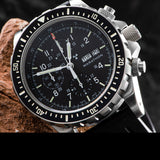 The Marathon Pilot's Chronograph model (NATO Supply Number: 6645015440408) features a 7750 ETA Valjoux Automatic (Self Winding) 25 jewel Swiss movement with “Date & Day” display and "Rapid Date and Day Correction”. The chronograph has 1/5 second (100th minute) timing. The movement is non-magnetic and has minimum 36 hour running time.