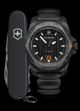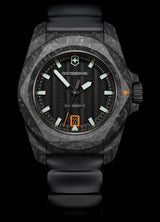 A timepiece at the top of its technical game, I.N.O.X. Automatic in carbon is a testament to Swiss precision and exacting engineering. Engineered by the Victorinox in-house horologists, this expert piece of gear is exceptionally resilient. With specs that span 200m water resistance and ISO-1413-certified shock resistance, and its lightweight carbon composite case, it’s always in control.