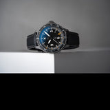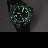 The GMT model, both the Arabic numerals of the inner 24 h scale and the arrowhead of the GMT hand are in Superluminova Dark Orange. The two logos and the date at the 4 o'clock position are recessed in a shade of grey to avoid any in-flight distractions. The screw-down stainless steel caseback, decorated with an airplane relief, ensures water resistance up to 20 ATM. A Sellita SW330 automatic movement, also in TOP quality level, ensures absolute functional reliability.