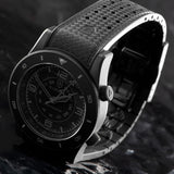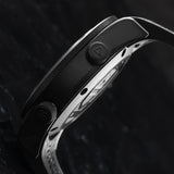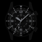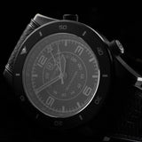 One turn of the high grip upper mission timing crown is all you need to feel an obsessive pursuit of detailed perfection. As the inner bezel moves, spring-loaded ceramic ball bearings click in and out of precisely machined chambers, securing the bezel precisely where required.