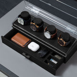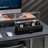 Functional doesn’t have to mean boring. Holme and Hadfield have kept the functional features of a traditional watch organiser and valet tray, while combining it with a modern style case to display your favourite watches in a unique way - and this pro version goes even further with an easy access hinged acrylic cover.