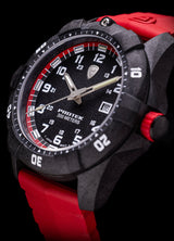 The Protek Dive Carbon Black Red features a composite carbon case with red highlights and rubber strap