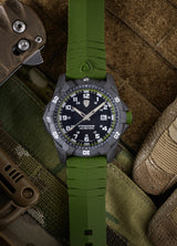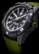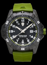 The Protek USMC Carbon Black Green features a black dial with a green rubber strap and dial highlights